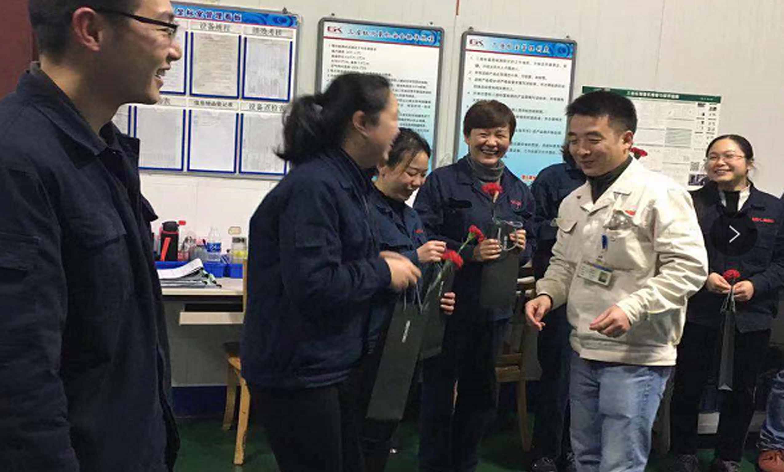 2019年3月8日,為了體現(xiàn)對全體女職工們的特別關愛,高金各部門領導及工會成員已提早到達公司,拿著工會提前為職工精心策劃和準備的鮮花、禮物以及書寫著公司祝福語的愛心卡等候到達的女職員們。